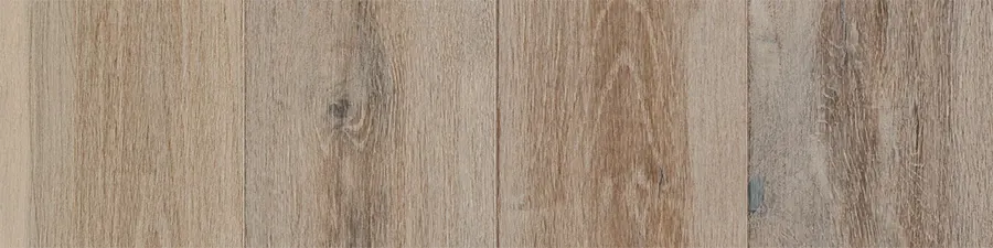 Serene tones and time worn textures elevate the character of this European Oak hardwood. Every 7.5-inch plank is carefully brushed, painted, then sanded to achieve a crafted finish with the natural essence of weathered painted wood.