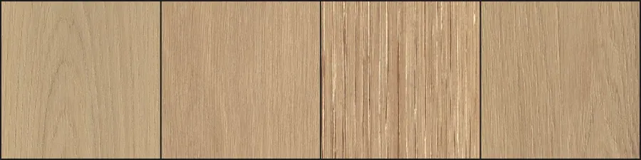 Each wood species has a distinct character that can vary from low to high levels. The guide below illustrates the character variation you can expect with this style.